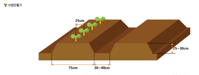 ㅇ 적절한 배수 배수가 잘 되도록 하고, 습기가 많은 곳은 이랑을 높게 합니다.