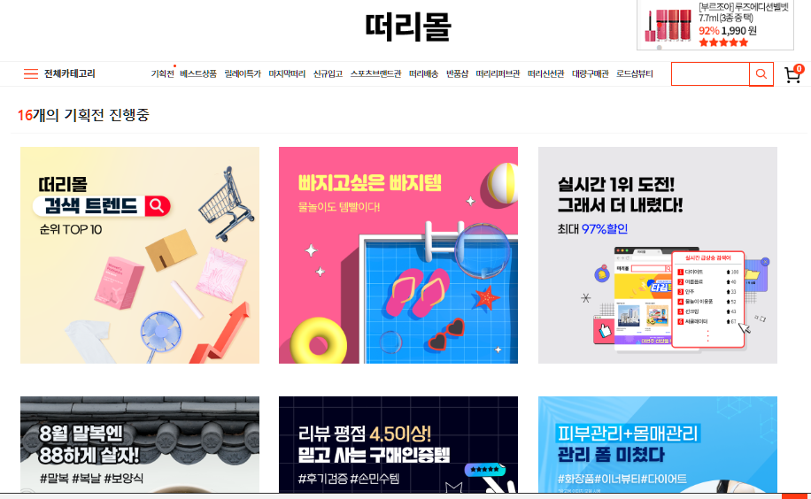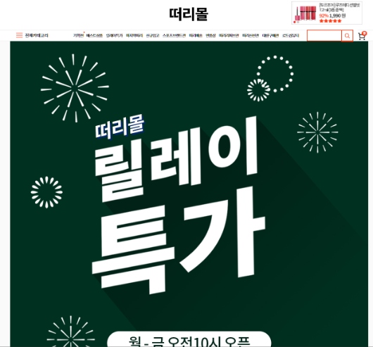 떠리몰에서는 다양한 이벤트와 특가를 진행하고 있습니다. 타임특가, 주말특가, 릴레이특가 등으로 더 즐거운 쇼핑을 할 수 있습니다.