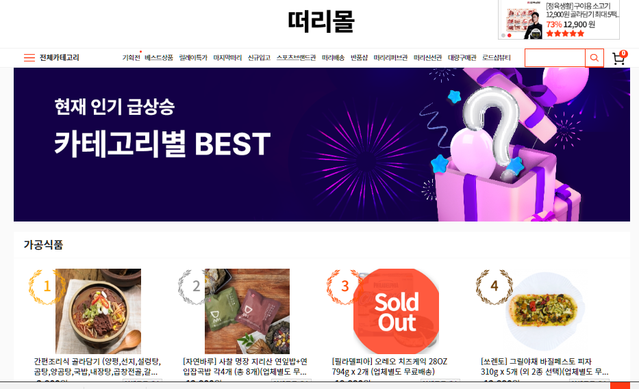 떠리몰은 유통기한 임박상품 전문 플랫폼으로, 폐기되거나 낭비되는 가치 있는 상품들을 저렴한 가격에 구매할 수 있도록 제공합니다.