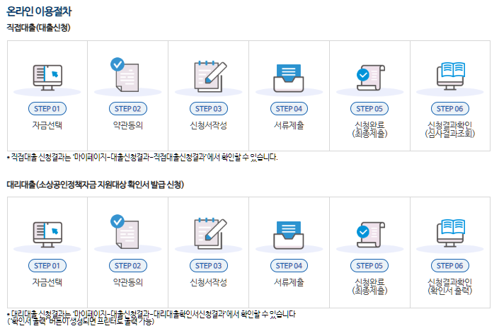 [소상공인정책자금포털]에서 회원가입 후 로그인하여 원하는 정책자금을 선택하고 신청서를 작성하면 됩니다.