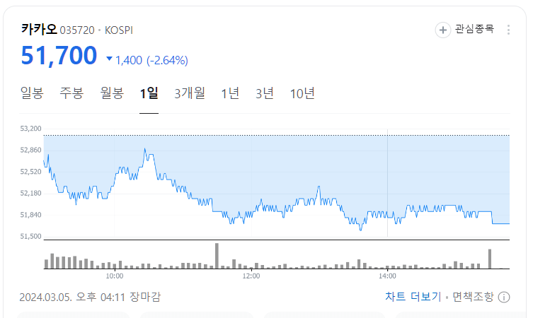 [카카오 주가 (2024.03.05 현재)]
