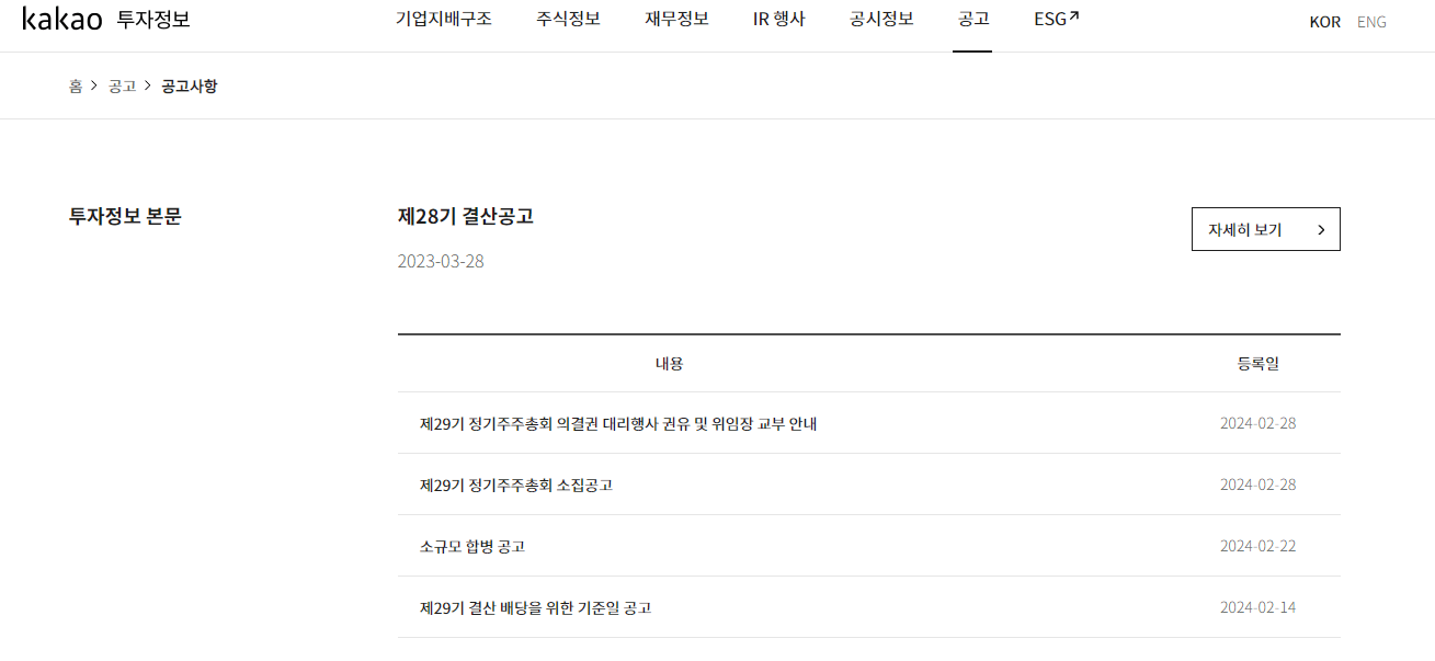 3. 카카오, 카카오스페이스 소규모합병 공고 보는 방법