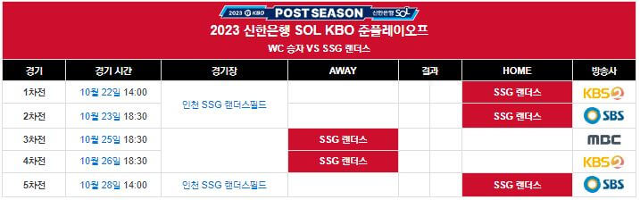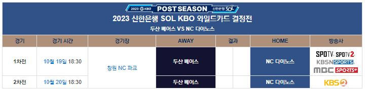 우선 중계방송이 확정된 와이드카드 결정전과 준플레이오프 경기일정을 알려드립니다.