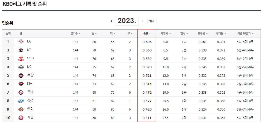 ✅ LG트윈스는 1994년 이후 29년 만에 정규시즌 우승을 차지하며 한국시리즈 직행에 성공했습니다. 염경엽 감독이 새롭게 지휘봉을 잡은 올 시즌, LG트윈스는 균형 잡힌 투타와 적절한 작전으로 6월 말부터 1위를 지켜내며 시즌을 마무리했습니다.