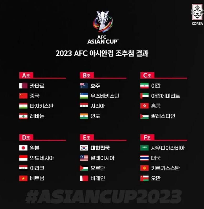✅ 2023 카타르 아시안컵의 조편성은 다음과 같습니다.