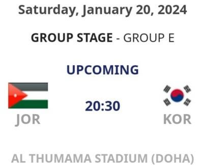 2) 2024 1월 20일 토요일 22:30 한국 vs 요르단 (알투마마 경기장)